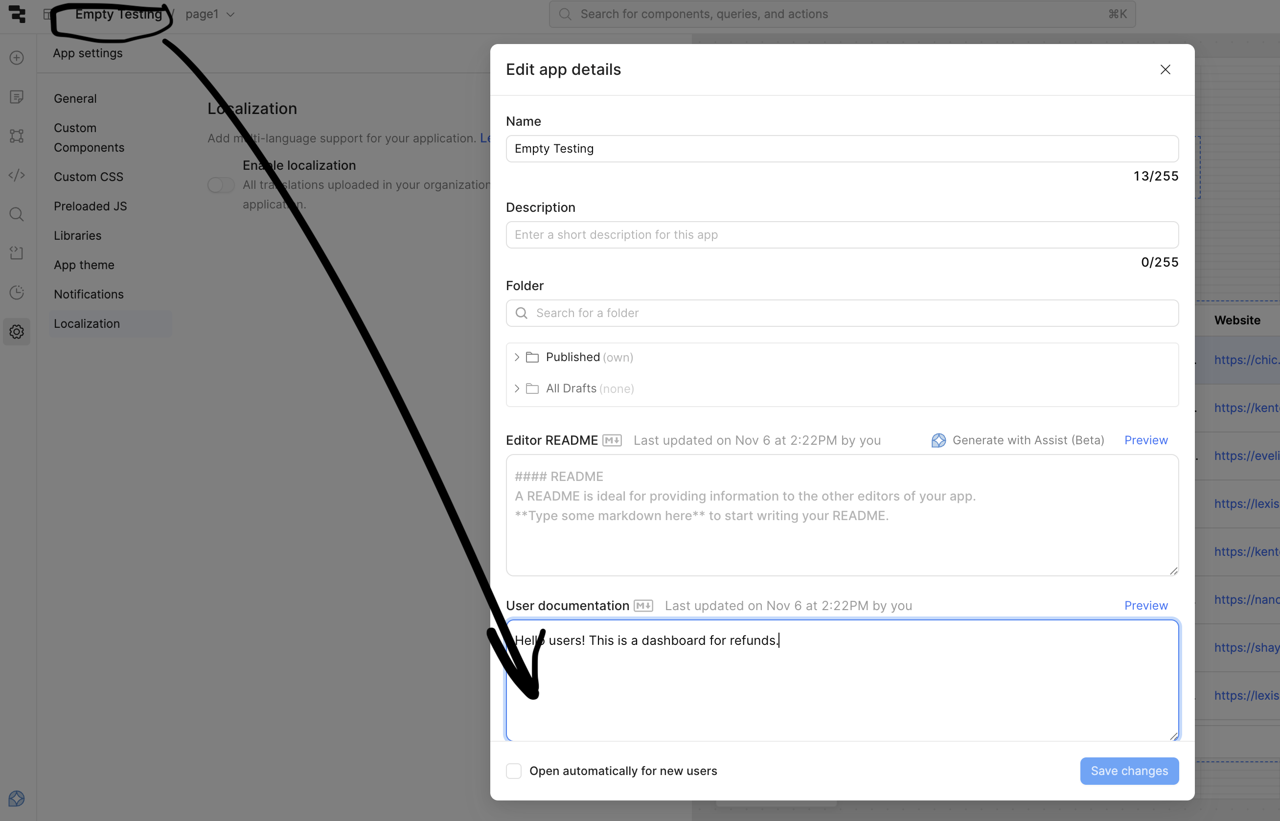 Here's the link to the document I am referring to Add documentation to web apps | Retool Docs
