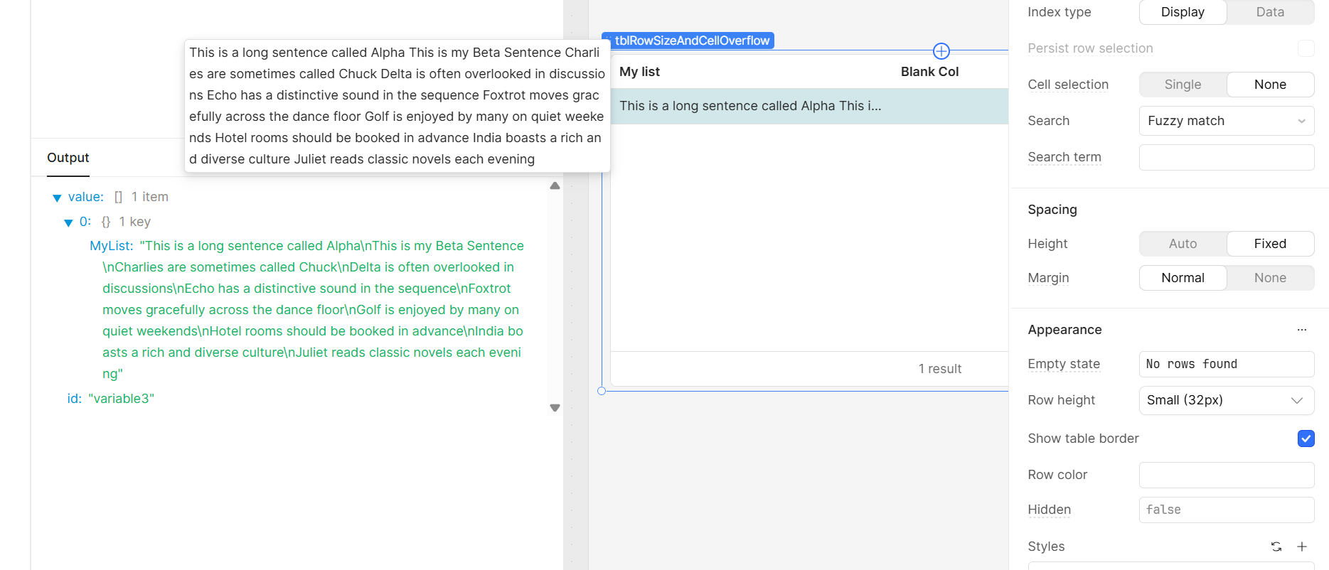 Spotted what I think is unexpected behaviour with the 'Cell Toolip: Overflow'