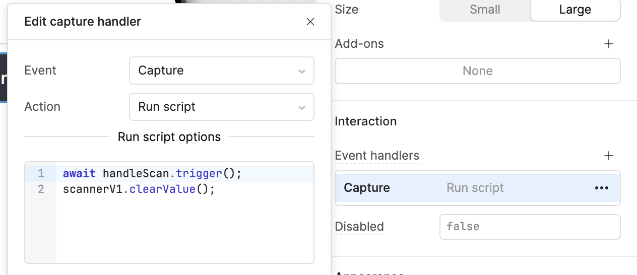 We currently have no way to call the scanner component, so we can’t trigger scannerComponent.clearValue() anywhere.