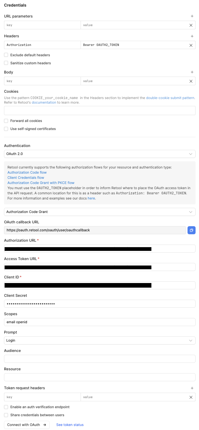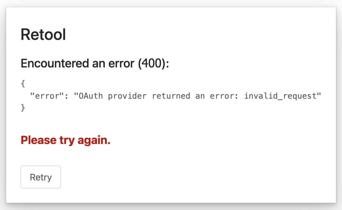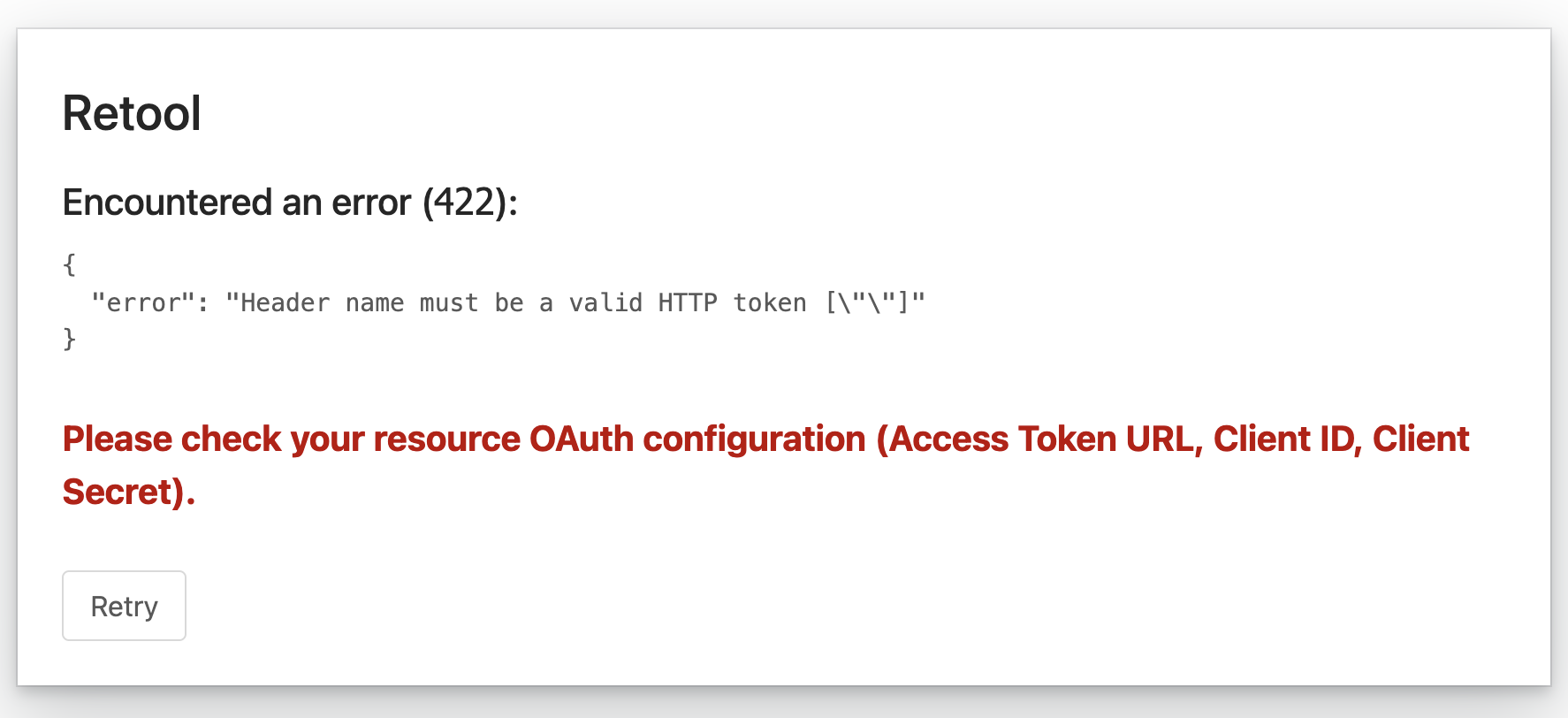 It seems resource is now mandatory, at least this is what I can infer from the URL “https://oauth.retool.com/oauth/user/oauthcallback?error_description=identifier+for+resource-binding+must+have+a+valid+URI+scheme&state=xxxxxx&error=invalid_request”