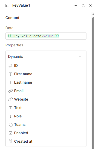 Other components, like tables and key_value, don’t expose the setData method in the GUI. You can still adjust the data by using a variable as their source and setting that. For example, I have a variable called key_value_data which is populating a key_value component and I can update the variable value to change the key_value components data source. If you are using data sources that have columns you may not want to show, you can use _.pick() to limit the number of columns you’re showing. This can be super helpful if your different tables have some columns in common but some that differ.