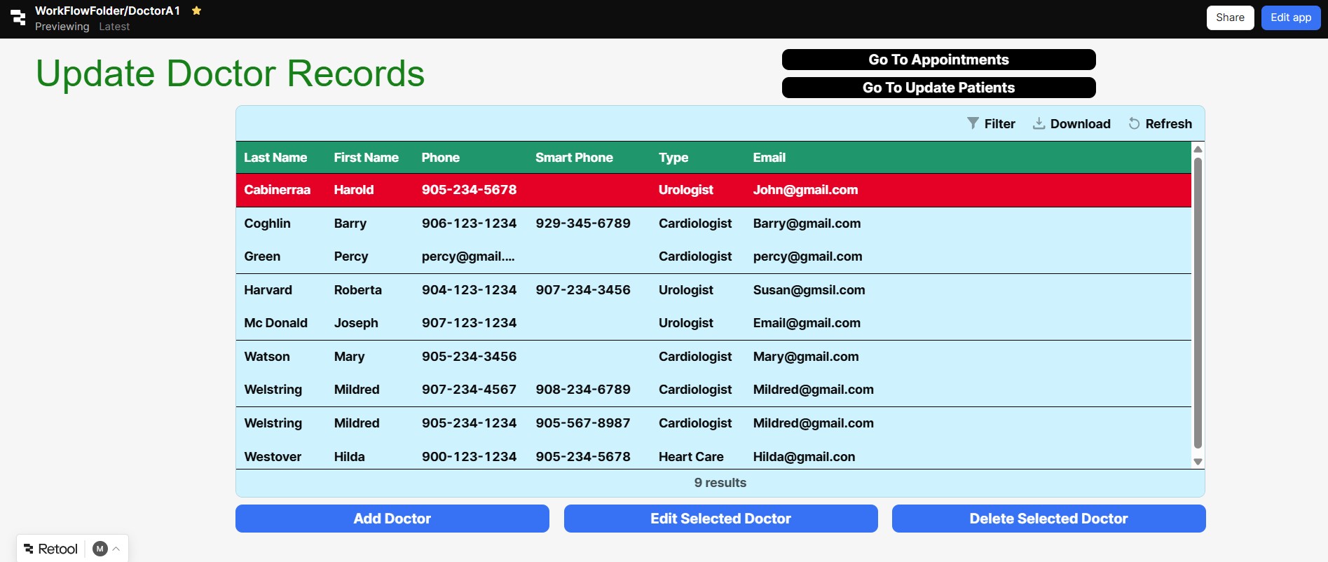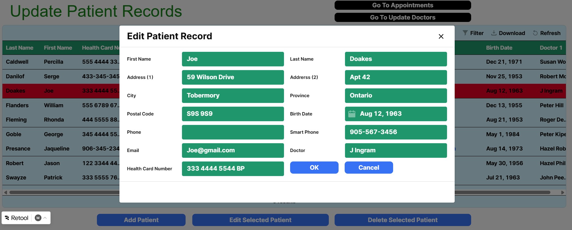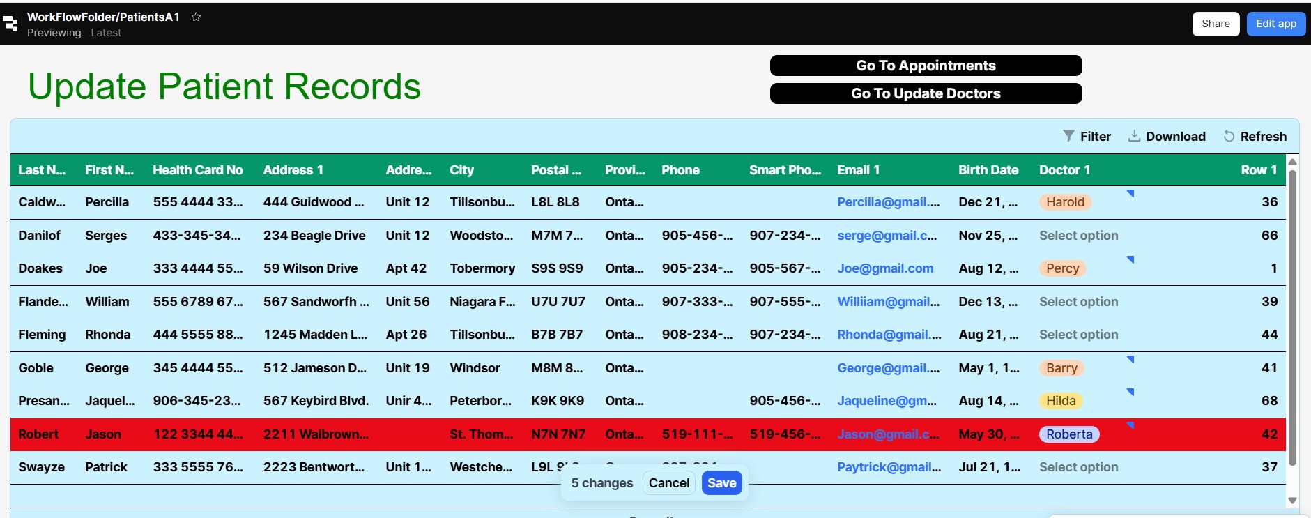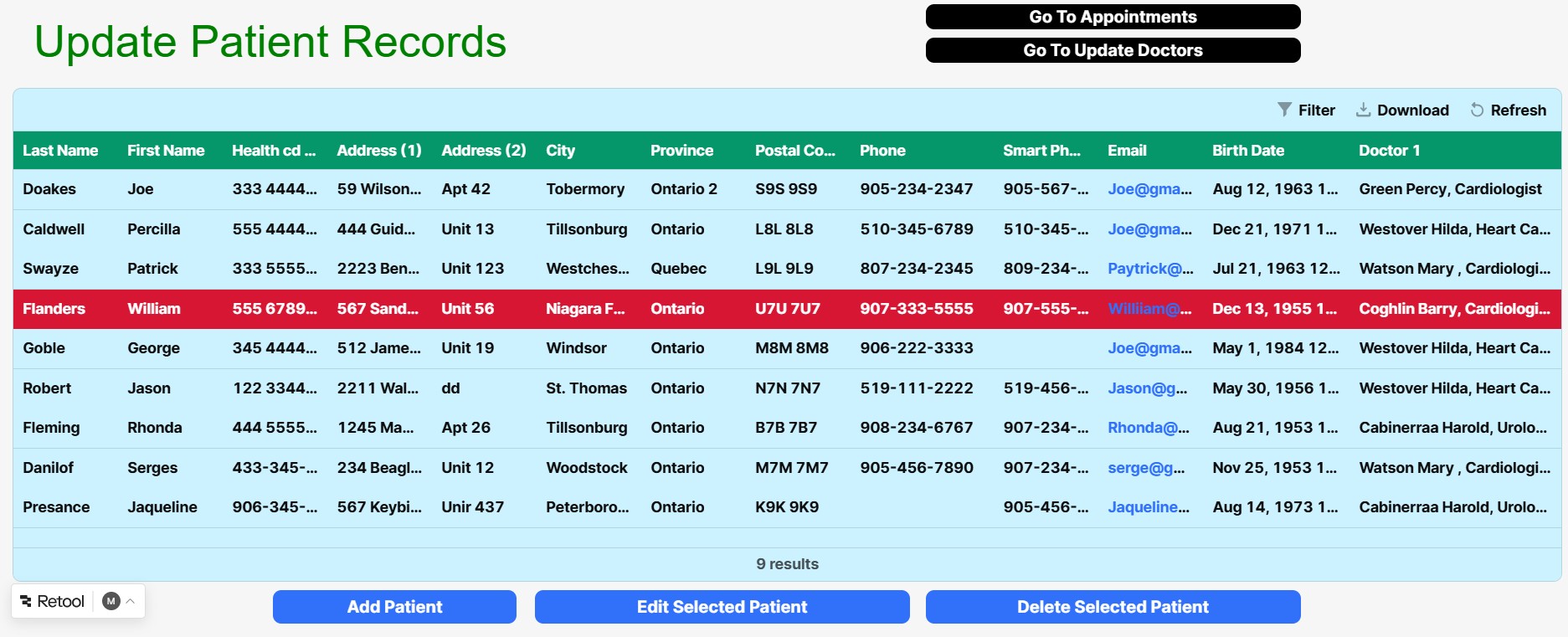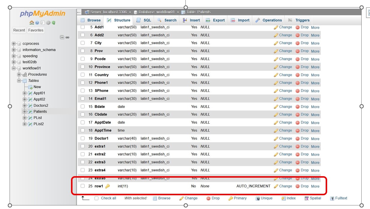 next we need to check that the Retool Table Component matches your database table from cPanel. I can't quite see all the columns in the picture below, but unless there's a hidden one after Birth Date it looks like the retool table is missing the row1 column.