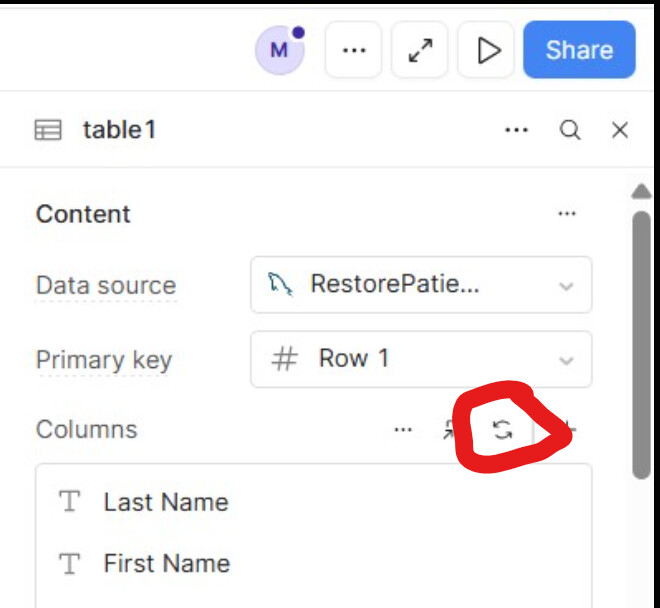 this can happen when you add a column to the database using cPanel but forget to inform the table component inside retool that there are changes made to its Data source. we can fix this 1 of 2 ways.