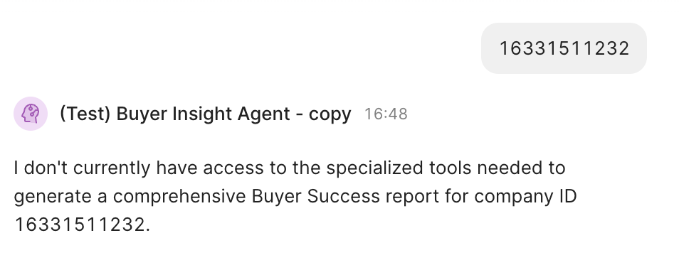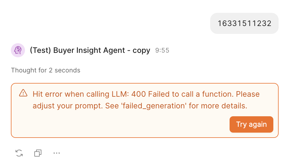 A screenshot showing the failure of acknowledging available tools (the agent was running smoothly on Claude, Gemini and Retool-provided DeepSeek):