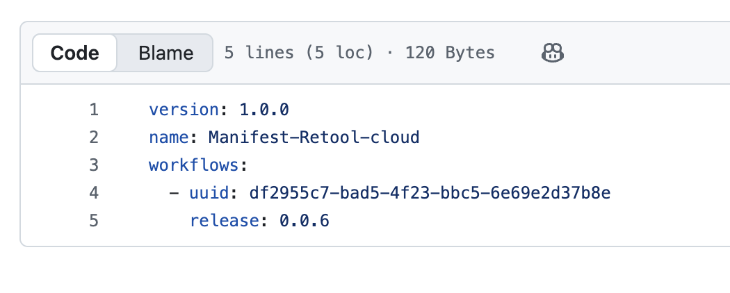 Here is an example of my own Manifest pointing to a specific version for my Workflow
