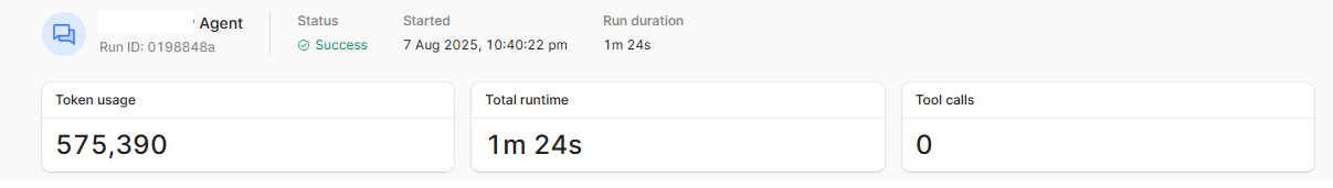 Hey @eric-cheng, thanks for reporting this! Looks like this has been fixed last week! When you get a chance, can you check the single agent run view on your monitoring page and see if the “tool calls” count is showing up correctly now? Would love to confirm it’s all working for you, thank you!