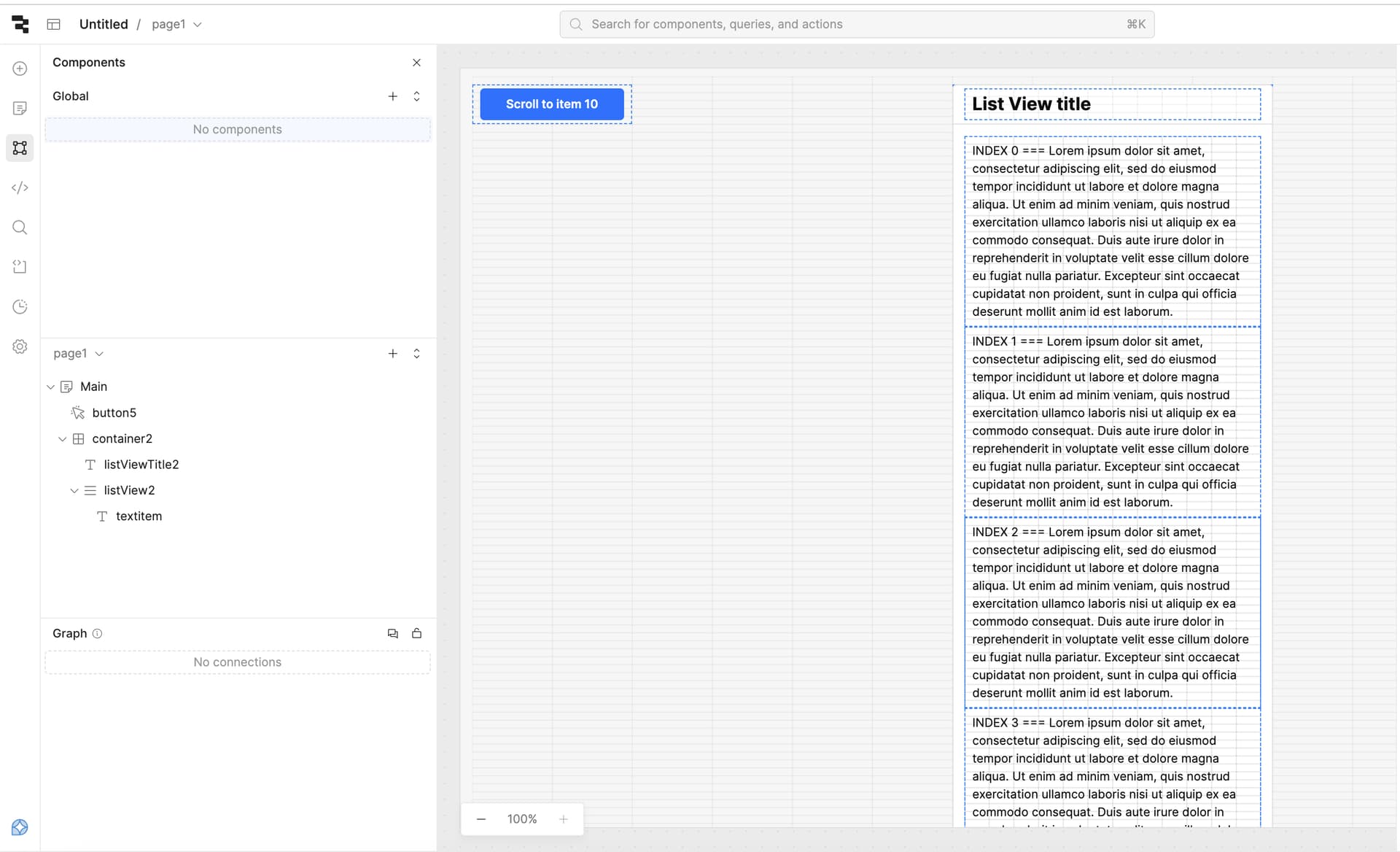 I’d like to have a button that, when clicked, automatically scrolls the page down to the 10th item of a List View component.