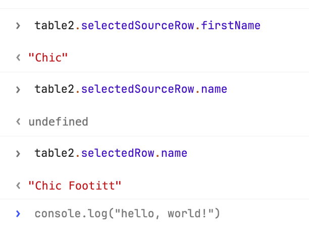 in our apps different implementations use selectedRows vs selectedSourceRows, mutate the table selection in different ways, return different values, and show different notification behavior…