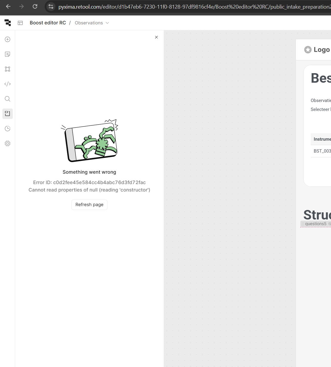 Since a few days I am constantly having problems with retool (cloud). Whenever I am workind in edit mode my panels randomly go to the āsomething went wrongā message. Sometimes refreshing the page works but a few clicks later it is back or another panel gives the āsomething went wrongā message. As in the examples below it is with different panels (left and right)