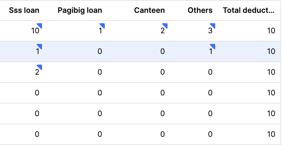 {{ (table1.changesetObject[i]?.sss_loan ? table1.changesetObject[i].sss_loan : currentSourceRow.sss_loan) + (table1.changesetObject[i]?.pagibig_loan ? table1.changesetObject[i].pagibig_loan : currentSourceRow.pagibig_loan) + (table1.changesetObject[i]?.canteen ? table1.changesetObject[i].canteen : currentSourceRow.canteen) + (table1.changesetObject[i]?.others ? table1.changesetObject[i].others : currentSourceRow.others) }}
