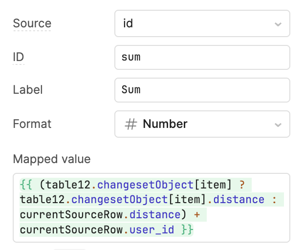 {{ (table12.changesetObject[i] ? table12.changesetObject[i].distance : currentSourceRow.distance) + currentSourceRow.user_id }}