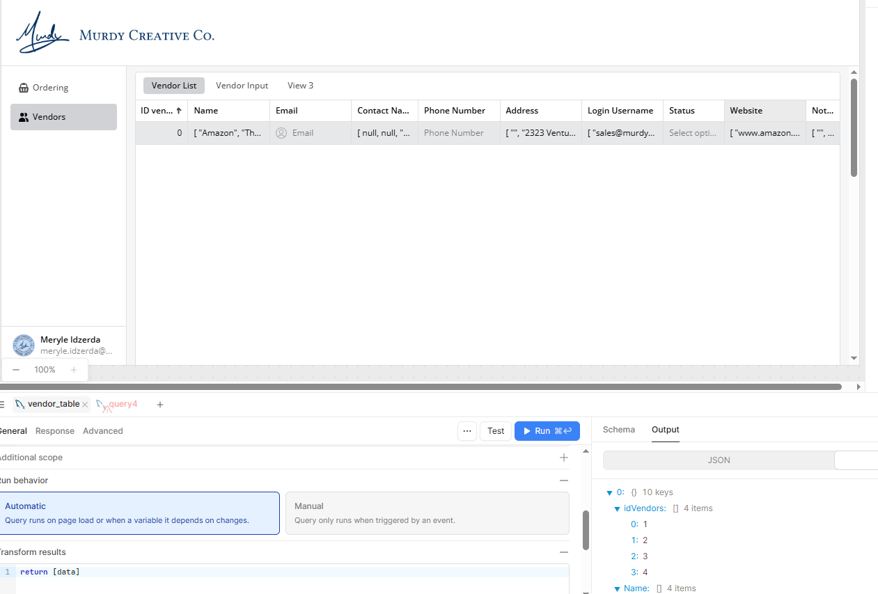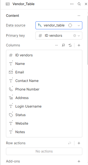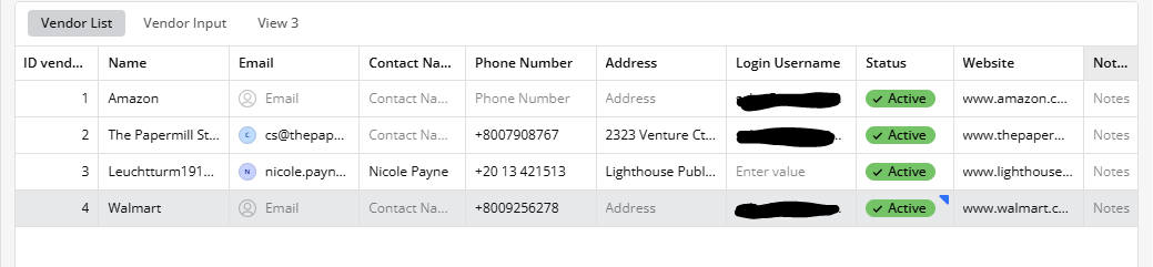 I have a table with data that I want to be able to be updated if someone makes a spelling mistake, needs to update the contact info, etc for my vendors.