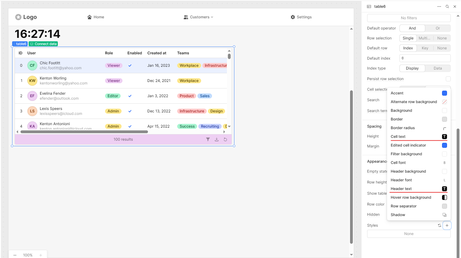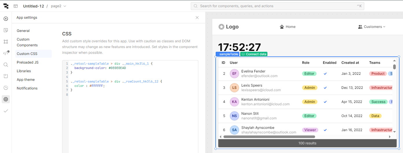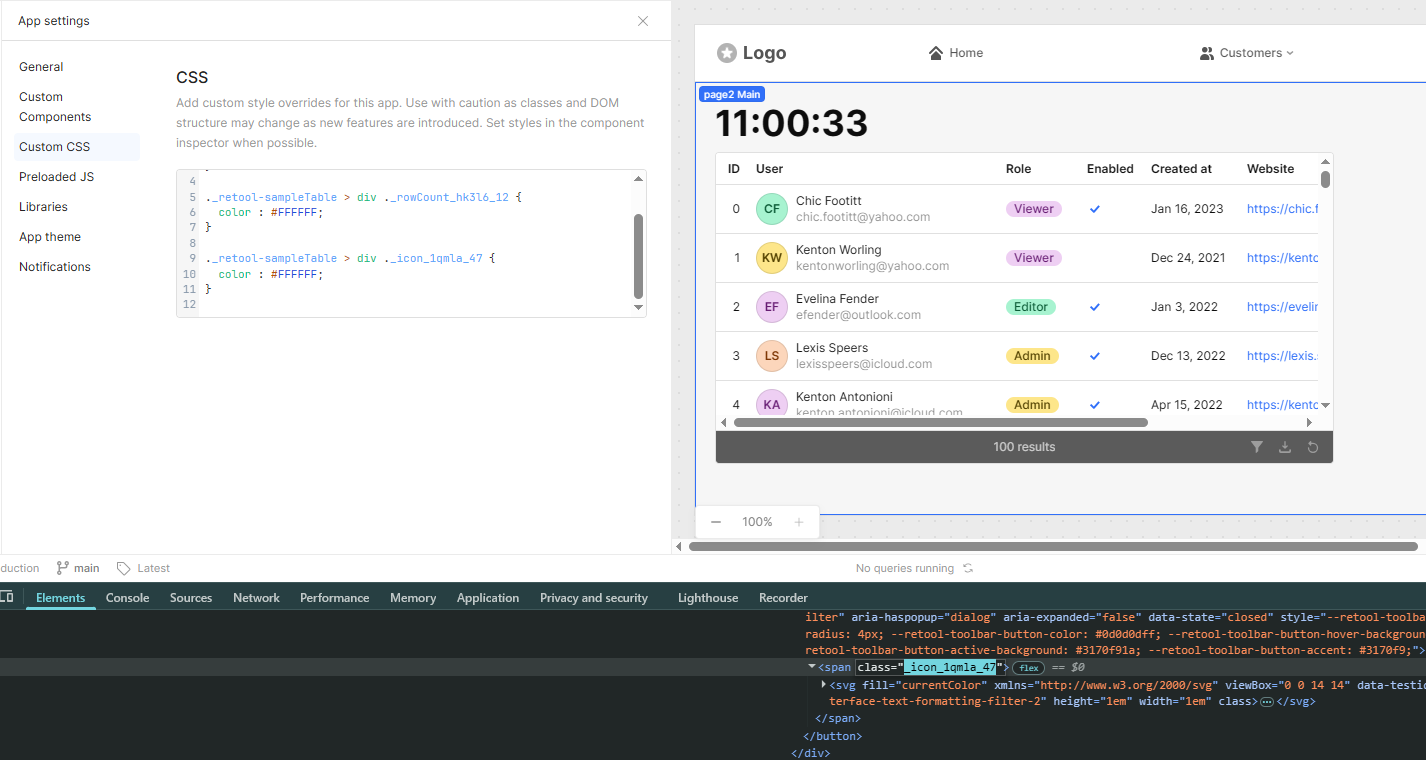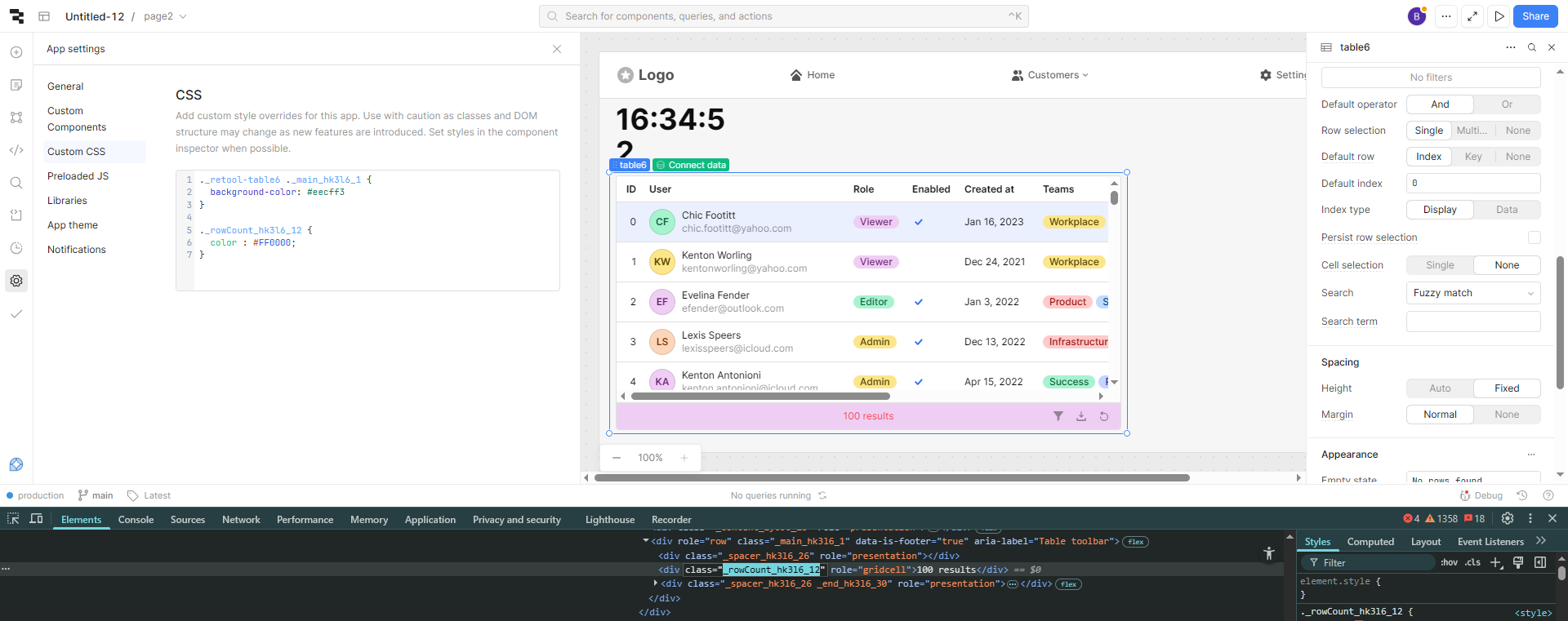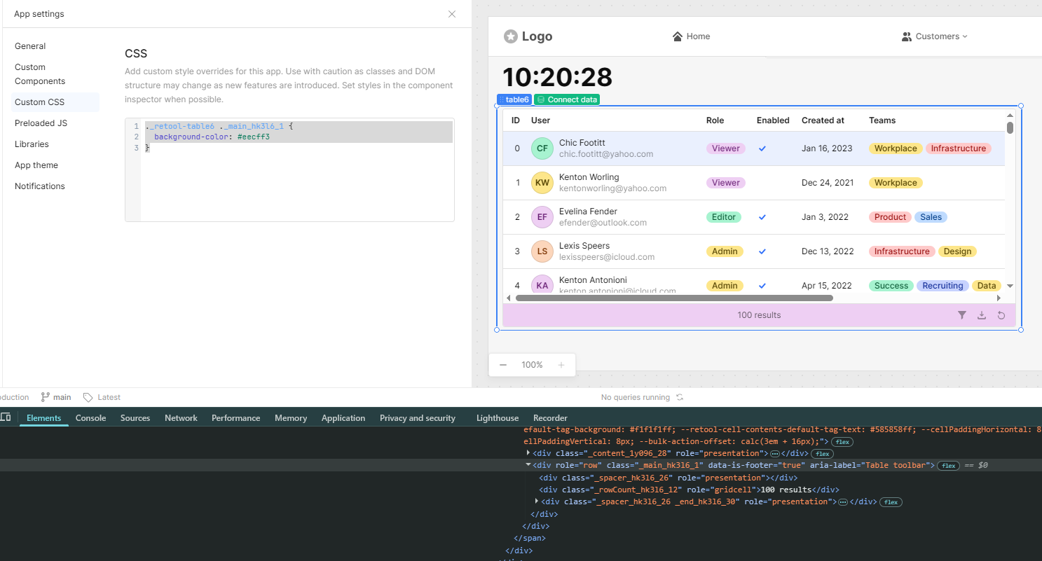 Retool doesn’t provide a built-in option to change the table footer color, but you can easily customize it using custom CSS.