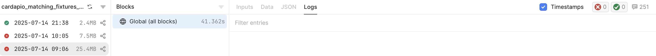 That is very odd can you share with me the workflow ID and run ID for when the logs are empty?