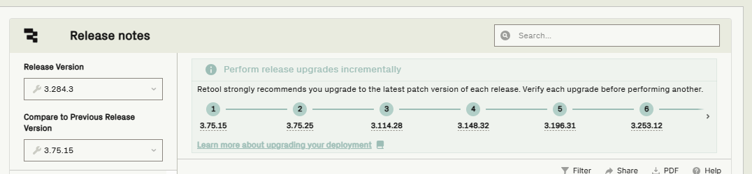 However, it seems the upgrade path no longer shows when I access this page recently. Is there any way on the retool document to find out similar information if I plan to upgrade to the latest version?