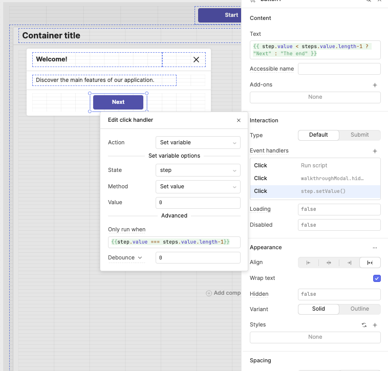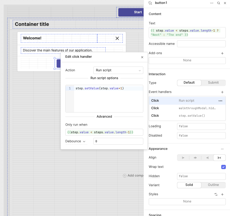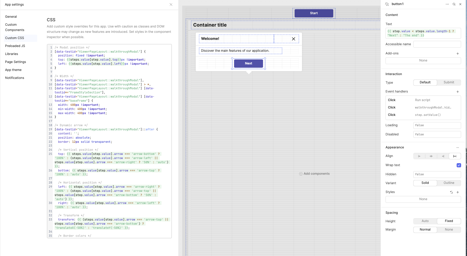 I updated my hack to create a Walkthrough component, using modals. This way, it’s more robust on different screen sizes and solves other issues.