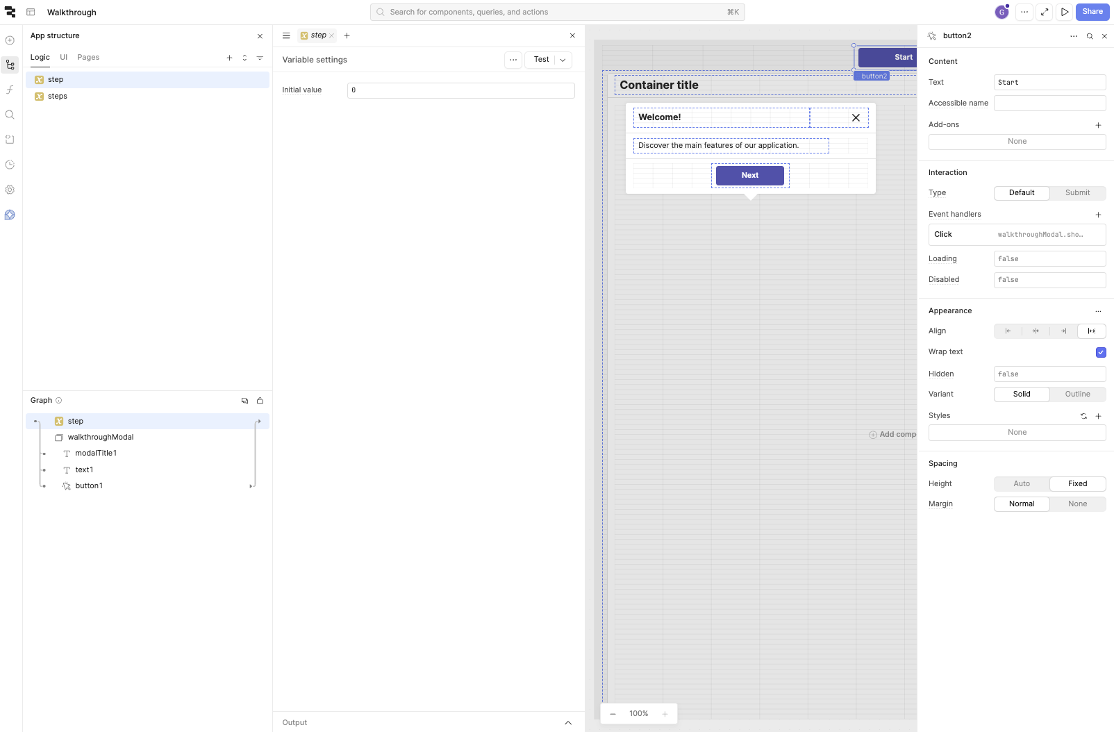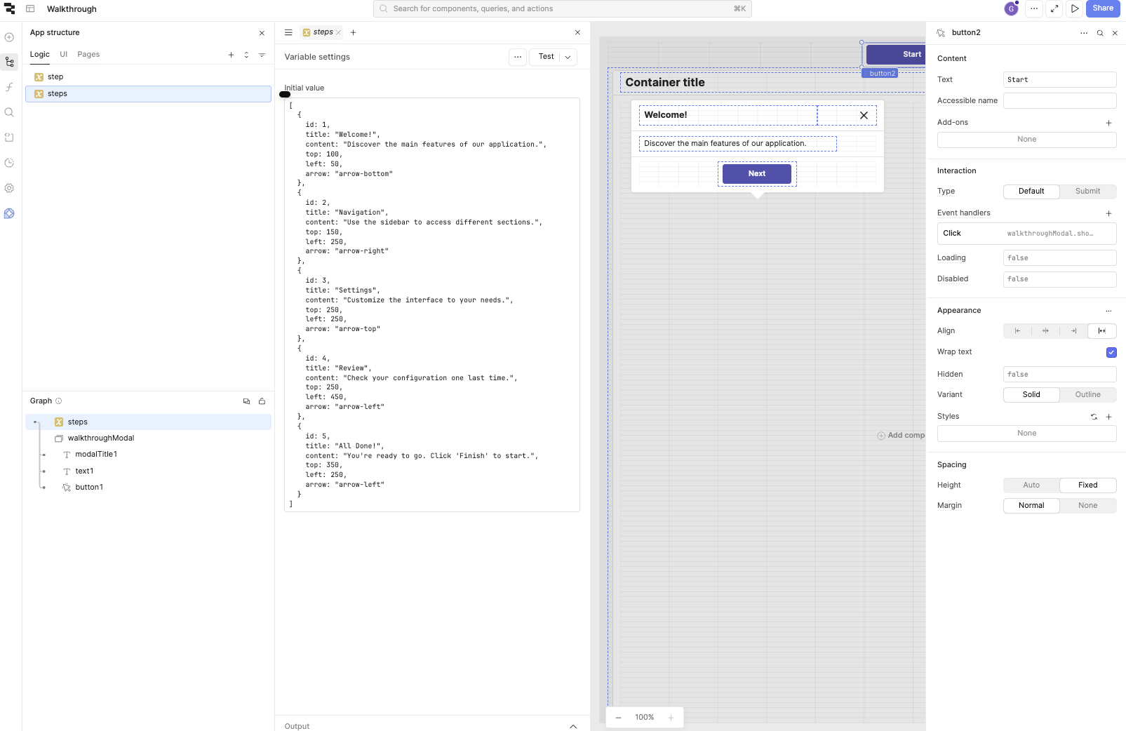 Name the modal ‘walkthroughModal’
