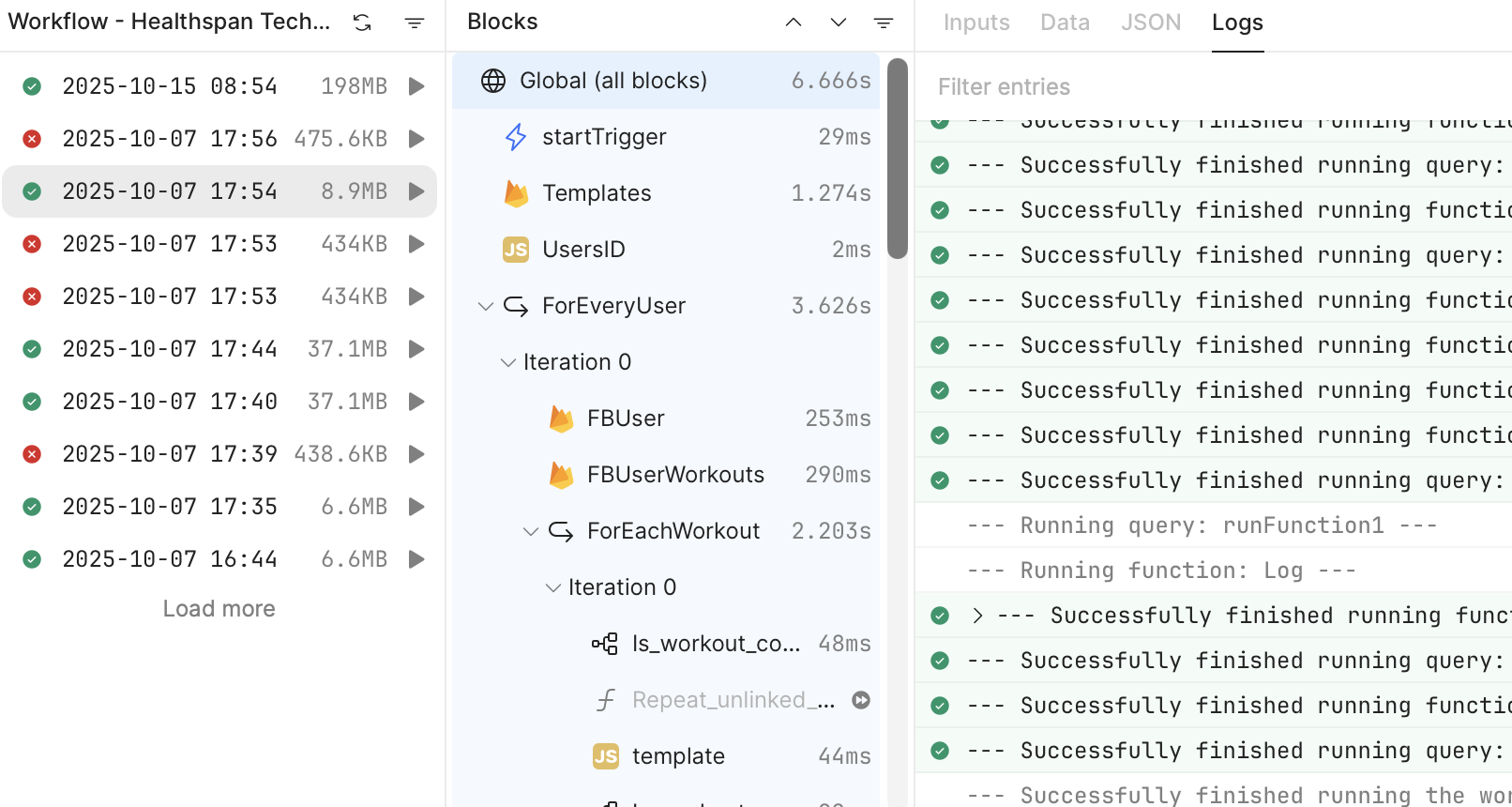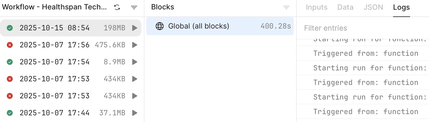 My last run (with a lot of objects) doesn’t show blocks. Only Global log.